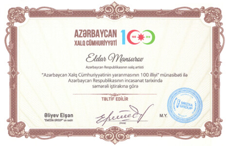 On the occasion of the 100th anniversary of the Azerbaijan Democratic Republic, Eldar Mansurov was awarded the Shams National Prize established by the EMEDIA GROUP for his services to the history of art in the Republic of Azerbaijan.